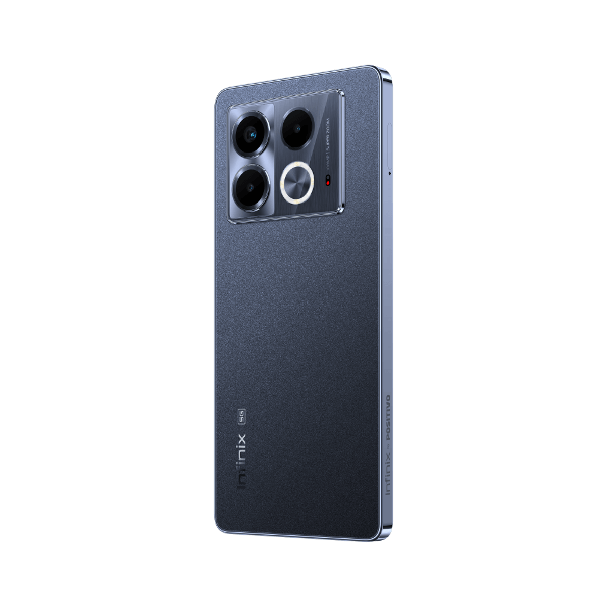O Infinix Note 40 5G tem acabamento elegante na cor preta obsidiana, com bordas finas e traseira em vidro fosco. Seu design é moderno e funcional, com leitor de impressão digital sob a tela e o exclusivo Active Halo, um LED multicolorido para notificações e chamadas.